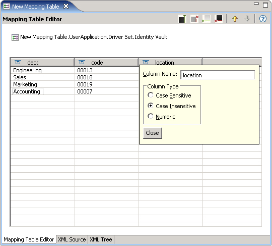 A DirXML mapping table consists of a top level <mapping-table> that contains