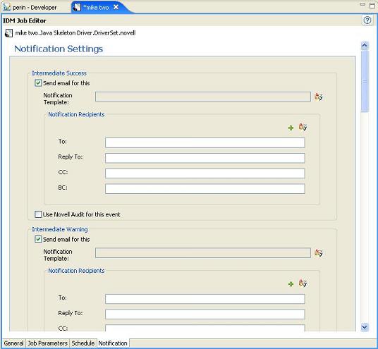 for each notification option. If email is enabled, the default Novell job template