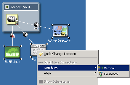 After you set a layout, applications that you connect will automatically snap into that layout. Certain connected objects (for example, multi-driver connections, eDir-to-eDir connections, and applications that are connected but reside in a different Domain Group) are ignored. They aren’t included in the layout, and they don’t disturb it.