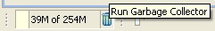 A status field at the bottom of Designer displays heap memory used and heap memory available for an application or other item in Designer.