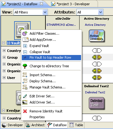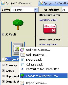 To switch from an Identity Vault icon to an eDirectory™ tree icon, right-click the Identity Vault, then select