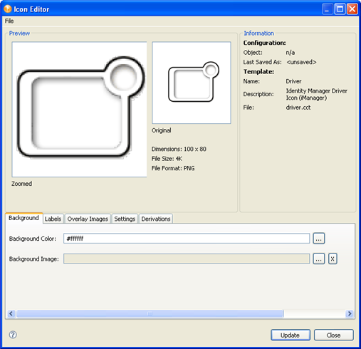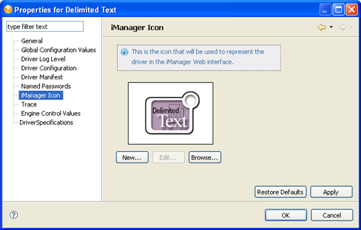 This transfers the icon to the driver’s or application’s iManager properties. (See the iManager icon on the driver properties page.)