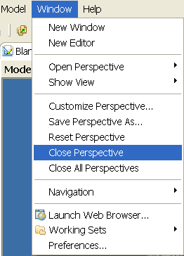 • On the main menu, select Window > Close Perspective (or Close All Perspectives).