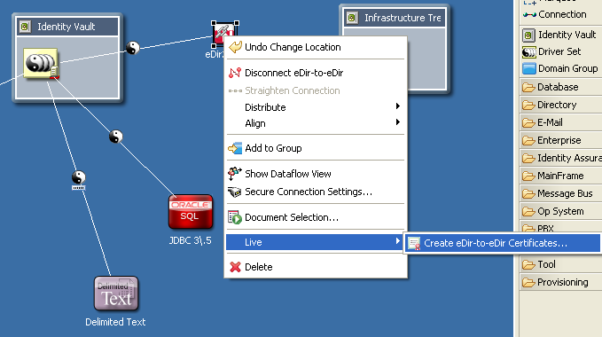 The eDir-to-eDir drivers have been deployed. Otherwise, Designer cannot create certificates.