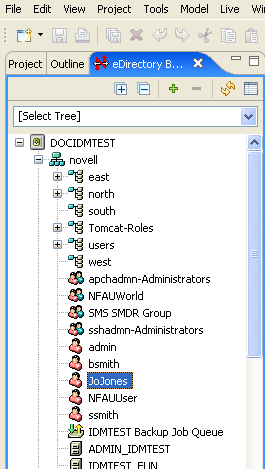 To use the eDirectory Browser to browse the Identity Vault in your current project: