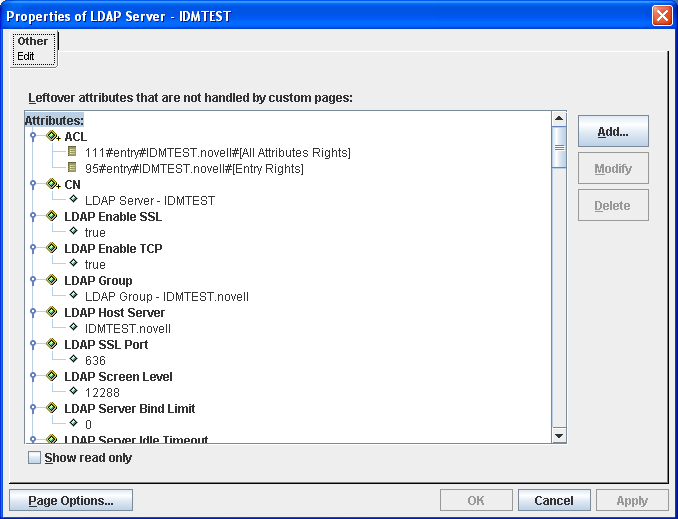 Sometimes it is necessary to locate or modify objects during your project development. Rather than using a separate management interface, you can use the eDirectory Browser to browse to and edit attributes of objects in the following locations: