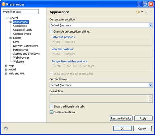 Eclipse lets you turn off capabilities. However, Eclipse sometimes detects that you need the capability, depending on how you use the product, and automatically turns the capability on again. You can select to receive a message when this happens. This feature doesn’t apply to Designer 4.0.