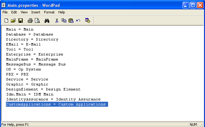 Add a key/value pair (for example, CustomApplications = Custom Applications).