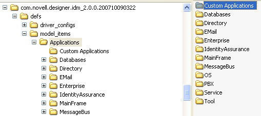 Make sure that the type attribute of the item-def element is set to an intuitive and unique name (for example, CustomApplication).