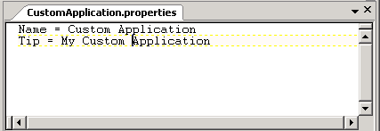 NOTE:The application definition file and the .properties file created in Step 5 need to have the same name as the type. In this example, the files are named CustomApplication.xml and CustomApplication.properties.