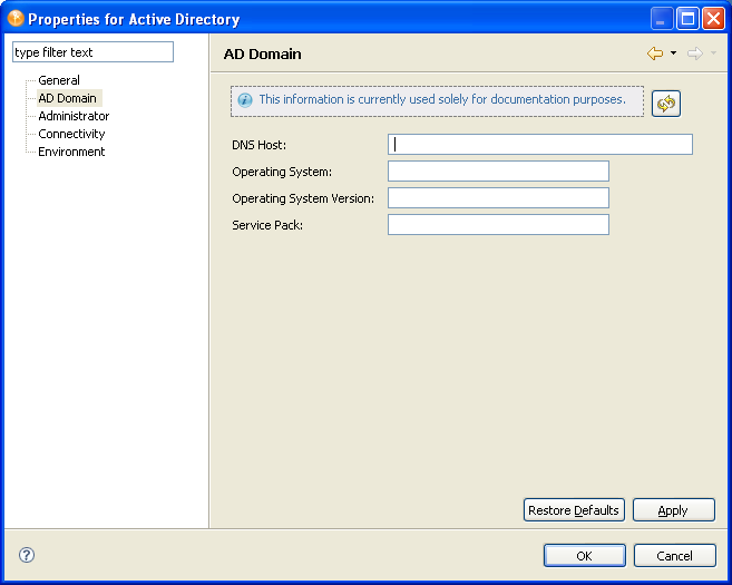Information about each controller is loaded into the Modeler. To view this information, edit the Domain Controller object and select the AD Domain page.