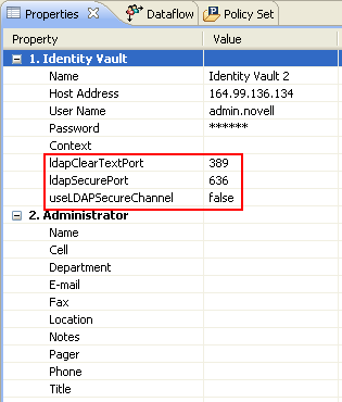 Under the Properties view, click ID Vault, then specify the LDAP clear text port and LDAP secure port numbers.