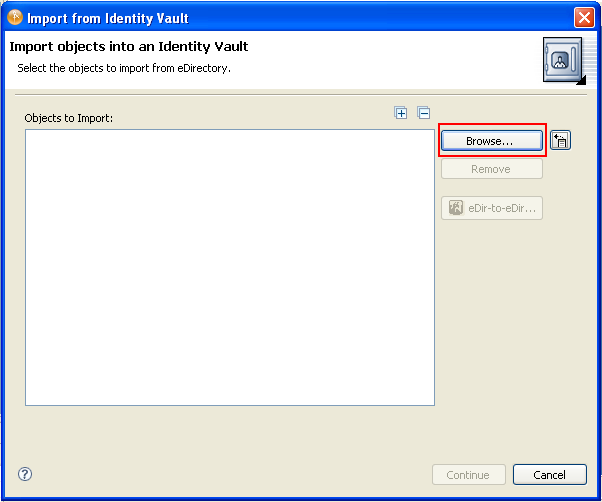 In the Import Additional Objects page, click to open the eDirectory Browser.