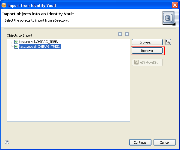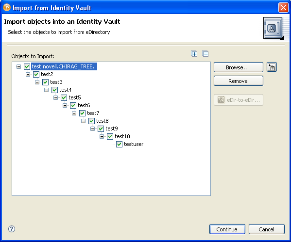 In the eDirectory browser page, select the objects that should be directly imported, then click . Or select the objects, select , then click .
