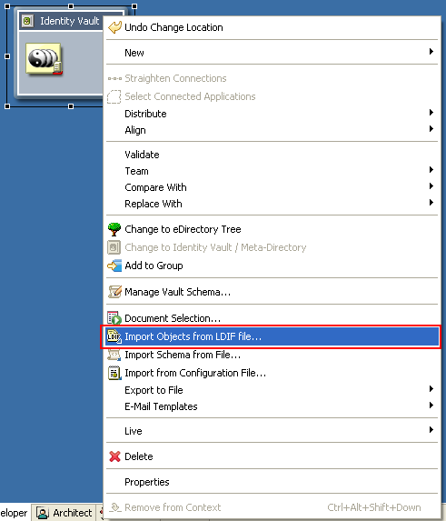 Designer provides the functionality to store additional objects (objects that are not modeled in the Designer). These objects are stored in an LDIF container under the Identity Vault. By default, there is no LDIF container. An LDIF container is created when the or option is selected.