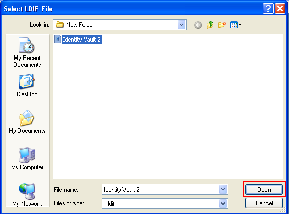 From the file browser that displays, select the file from which the LDIF object should be imported, then click .