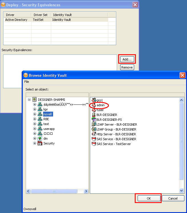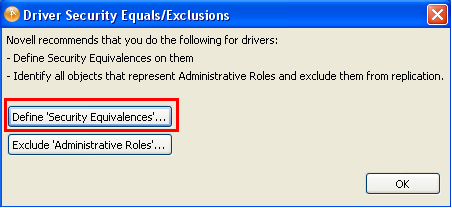 Designer allows you to define and deploy the Security Equivalences objects for the drivers in eDirectory.