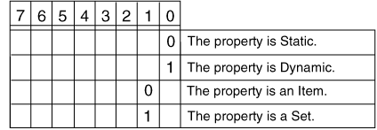 The propertyFlags parameter indicates whether the property is Dynamic or Static and whether the property is of type Set or Item. A Dynamic property is a property that is created and deleted frequently. Dynamic properties are deleted from the bindery when the server is initialized. Static properties remain in the bindery until deleted with DeleteProperty.
