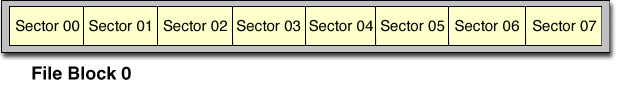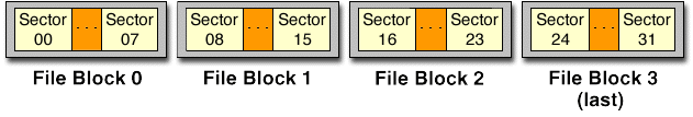 Files in direct file mode can be viewed as an array of sectors numbered from zero to n, where n is the last sector in the last block currently allocated for the file. All direct file I/O must be done in multiples of sectors (one or more). The sectors allocated in the file are actually allocated on an allocation block size, which is either 4 KB, 8 KB, 16 KB, 32 KB, or 64 KB on NetWare. The allocation size must be specified for a volume when the volume is created.