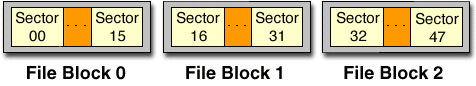 The logical block address of the blocks in the above array are referred to as File Block Addresses, and the associated logical sector addresses are referred to as File Sector Addresses. These addresses exist even for holes in the file, though actual storage space might not have been allocated for the corresponding locations on the file.