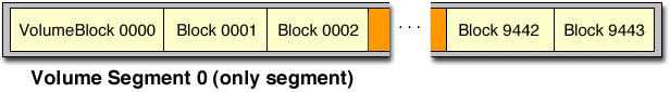 The following figure shows a volume with a single volume segment (9444 volume blocks):