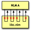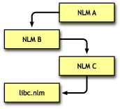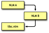 In the following graphic, NLM A calls into NLM B, and NLM B calls (on A's thread) into libc.nlm.