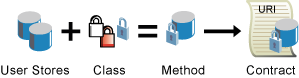 Authentication Methods: Pairs an authentication class with one or more user stores, primarily to identify authenticated users. Authentication methods also can be designed to identify entities other than end users.