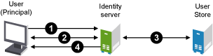 Figure 2-2 illustrates an example of how an authentication class is used to authenticate to an Identity Server. It uses a single user store located on an LDAP server to verify name and password credentials.