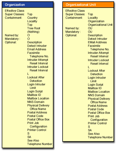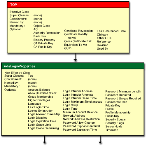 Figure 4-6 Graphical View of ndsLoginProperties, Organization, and Organizational Unit Class Inheritance