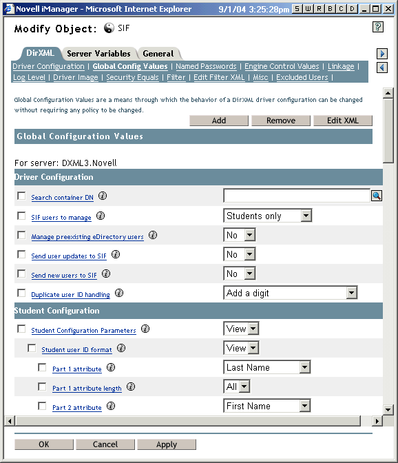 If you click the Global Config Values tab in the sample driver configuration for the DirXML Driver for SIF, you can see extensive use of these new features.