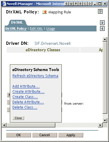 In the interface for the Schema Mapping Policy, you can click the button labeled eDirectory Schema Tools to make changes to the schema. Previously you had to use separate tasks in iManager.
