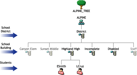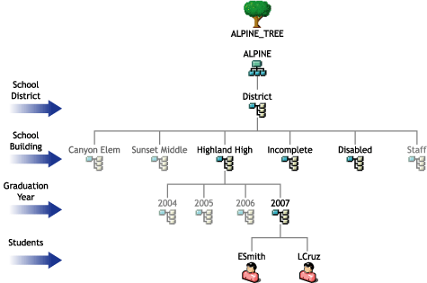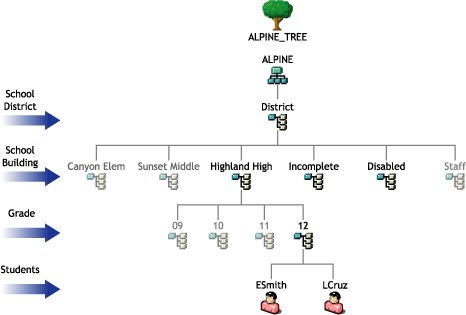 Figure 2 illustrates this example hierarchy, with the District container, the Highland High school container, and the 12th grade container.