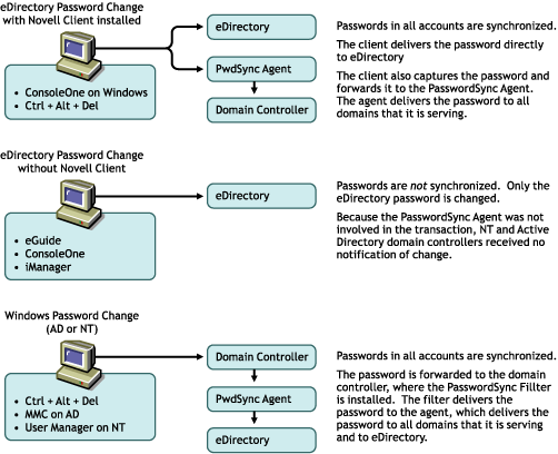Passwords can be changed in any number of places. The following graphic outlines several password change scenarios: