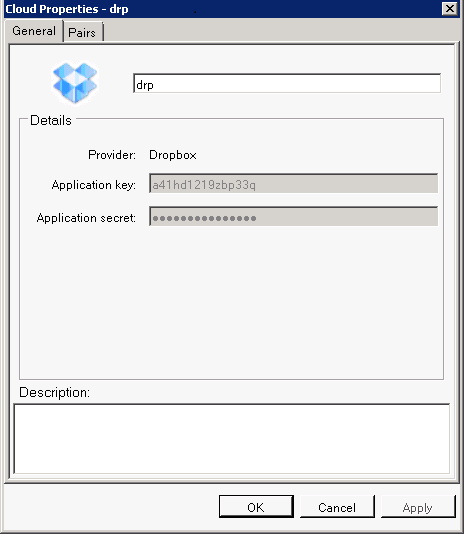 On the tab, you can view the account’s name, cloud provider, access credentials, and description.