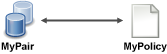 An association between a policy and a pair occurs automatically when you use the Setup Wizard to create a pair and a policy at the same time. The Policy Wizard allows you to select the pairs you want to associate with a new policy. The Pair Wizard allows you to select the policies you want to associate with a new pair. You can also associate (or disassociate) pairs and policies at any time by selecting the Properties dialog box of the pair or policy, and modifying its associations.