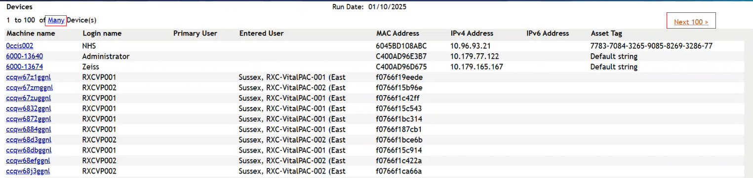 NOTE:Standard reports having Installations column (for example, Devices By Mfg / Model) will not have Many option. These standard reports display the total report count directly, as Memory optimization changes are not implemented for these aggregated reports.