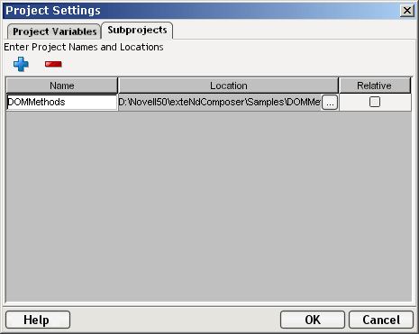 The Subprojects tab of the Project Settings dialog is where you can add or delete subprojects (other Composer-created .spf projects) to your current project.