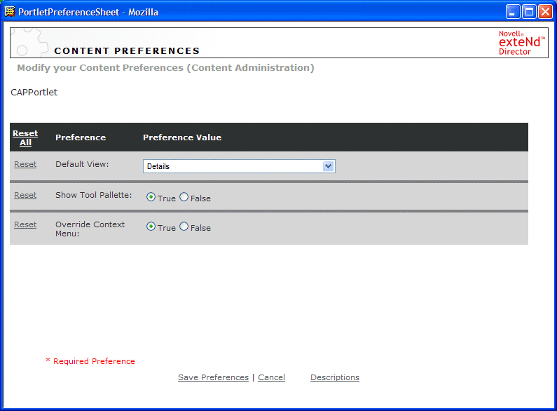 When you finish editing preferences, click Save Preferences at the bottom of the property sheet to record all changes.