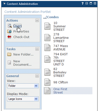 You can specify how the Content Administration portlet displays documents, folders, and categories, as described in General panel options. Follow these steps: