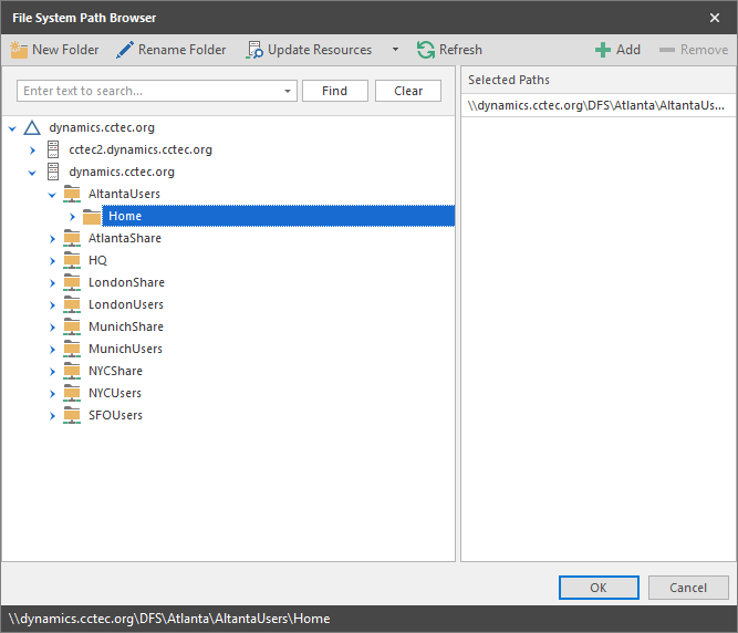 Browse to the location of the target path you want and click Add to add the target path to the Selected Paths pane.