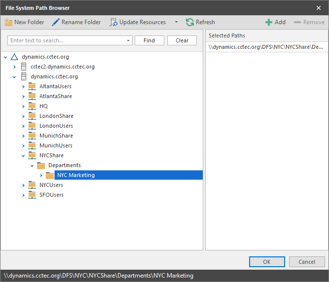 Browse to the location of the target path you want and click Add to add the target path to the Selected Paths pane.
