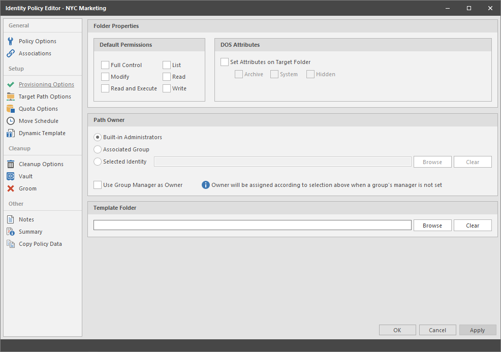 Selected Identity: If you want another object to be the owner of the folder, browse and select the object.