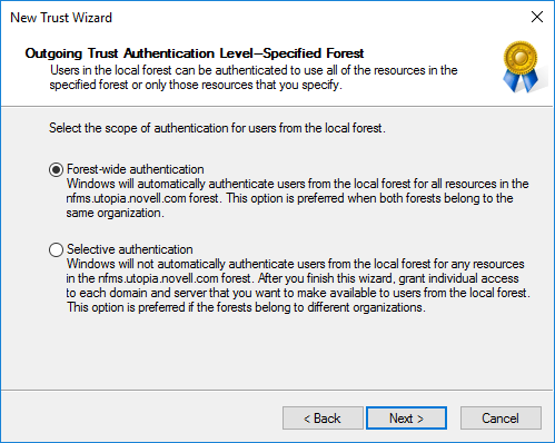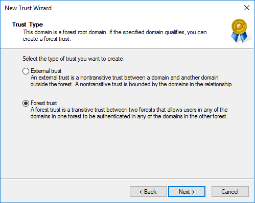To configure a supported forest trust, see Configuring a Forest Trust. After a forest trust is configured for use, you will need to set the appropriate permissions on shares so that they can be made available for access and management.