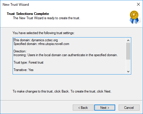 To validate the trust, specify Yes, confirm the incoming trust and click Next.