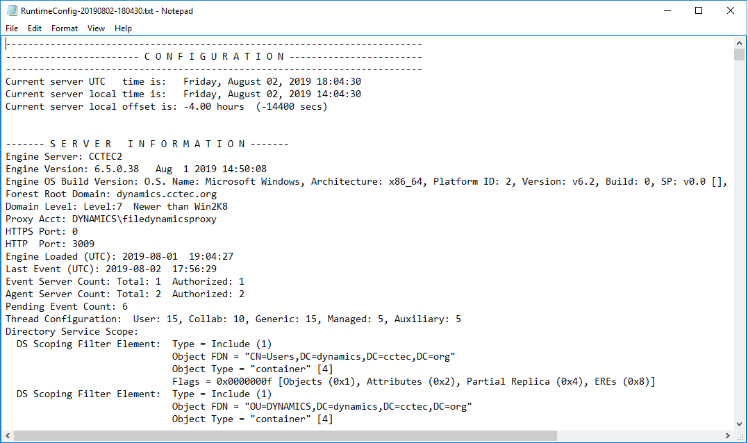 Runtime Config reports are used to build reports on the current configuration and pending events from the Engine. You can indicate which configuration data you want included in the report by selecting the desired check boxes.