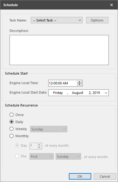In the Schedule Start region, set the time and data parameters when you want the database cleanup to take place.