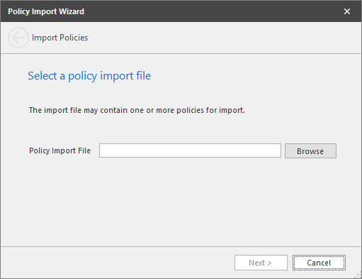 Previously exported policies are imported by using the Import Policies feature.
