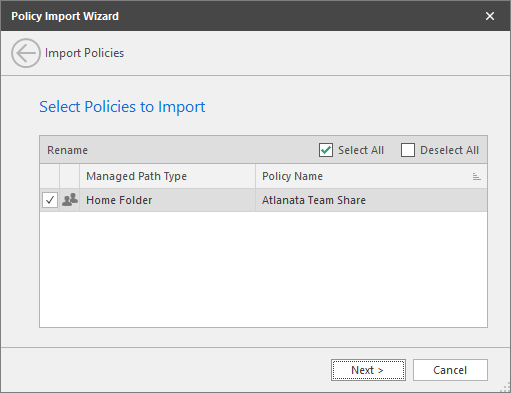 Verify that the check box for each policy you want to import is selected.
