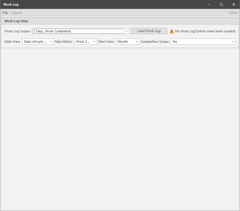 All Work Log entries in the CouchDB database are loaded and displayed with default parameters that you can modify.