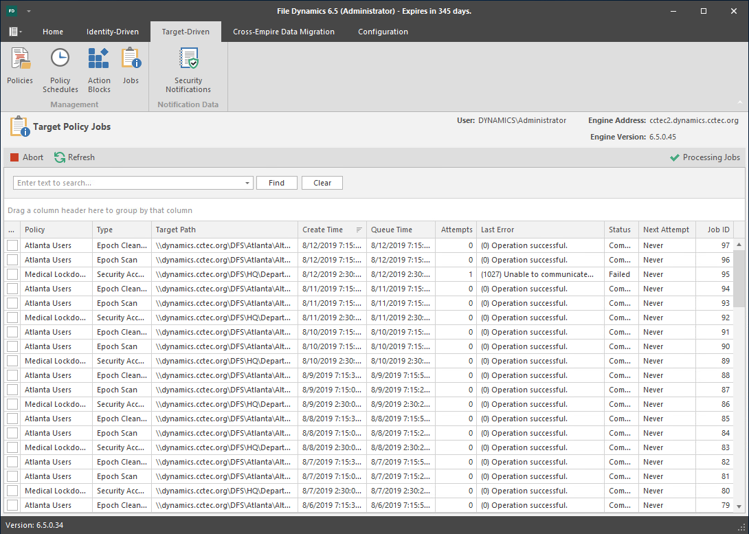 This page provides details on all Target-Driven jobs that have taken place or are pending.
